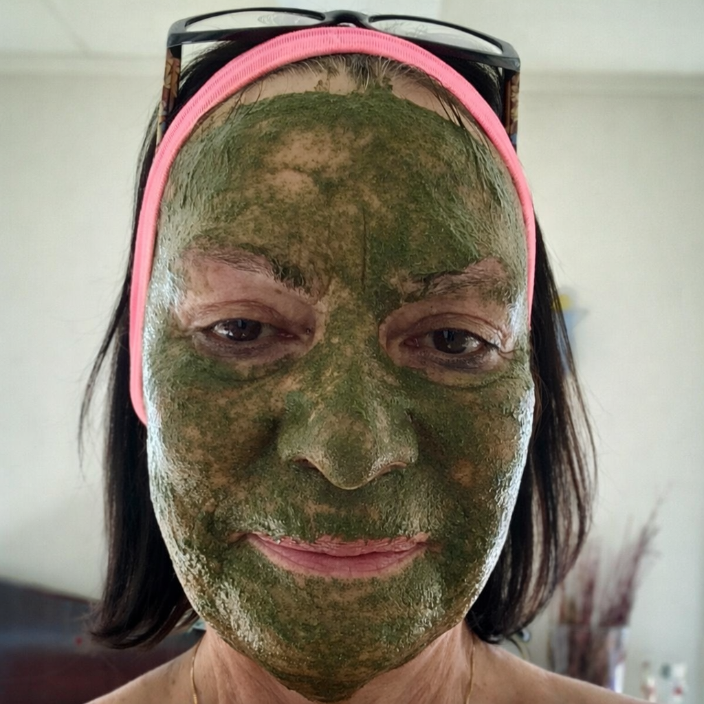 Rinse off gently with lukewarm water.A green moment for the face.
